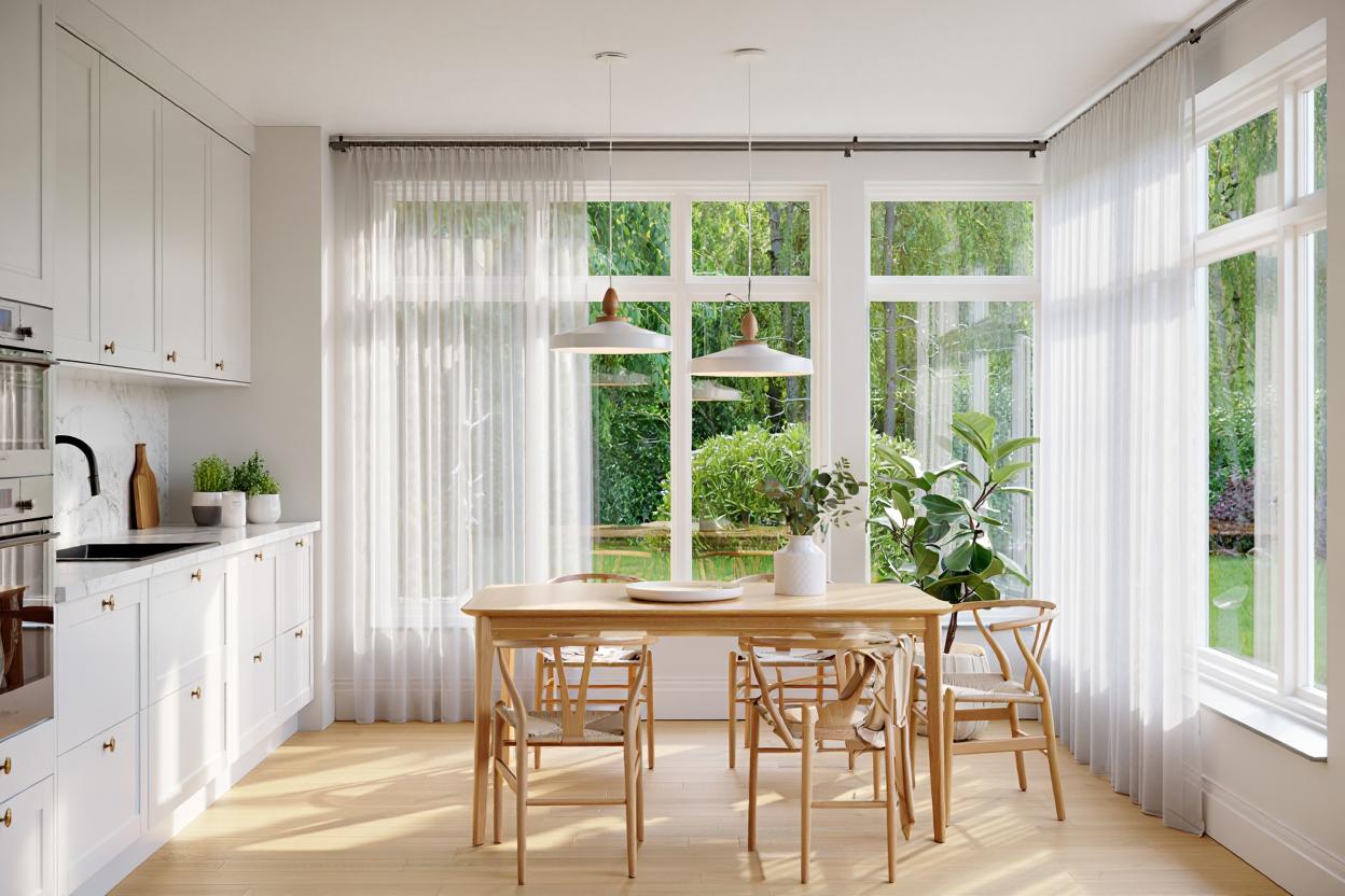 Окна — ключевая зона теплового обмена. Через них помещение может быстро нагреваться летом и терять тепло зимой. Автоматизация штор позволяет регулировать этот процесс. В жаркие часы шторное полотно закрывается, снижая тепловую нагрузку и уменьшая необходимость в кондиционировании. Зимой плотные ткани, закрытые вечером, помогают удерживать тепло внутри помещения.